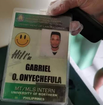 The Nigerian’s identification card photographed by the police showed him to be a medical technician intern of the University of the Northern Philippines.